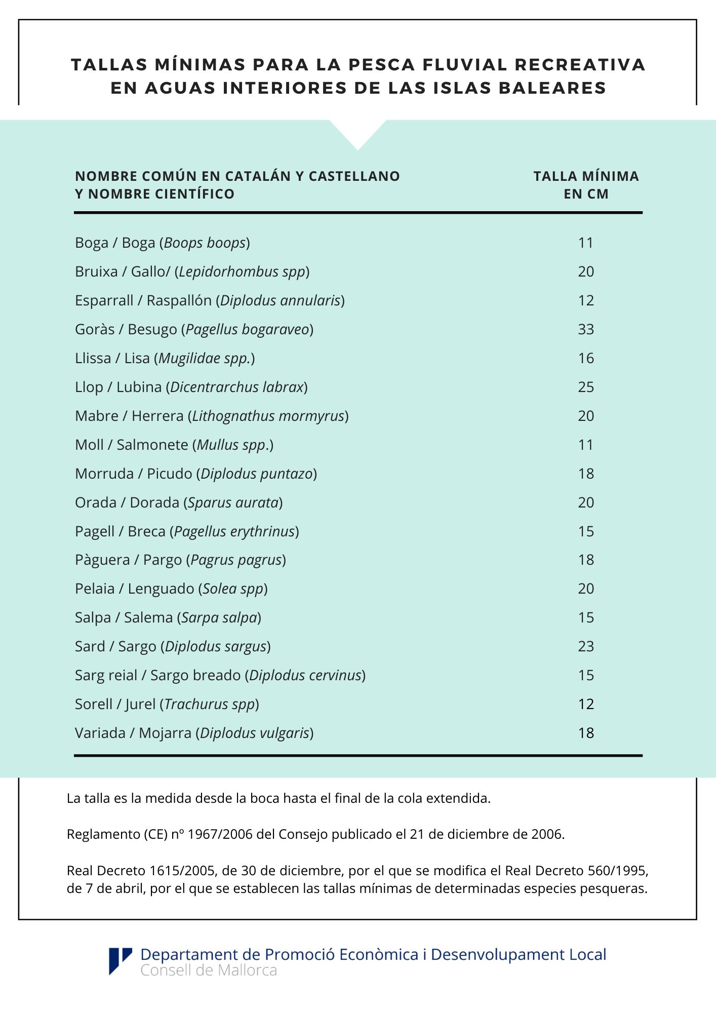 - Deben respetarse las tallas mínimas definidas en el reglamento y las podréis encontar en Documentos relacionados de esta página.