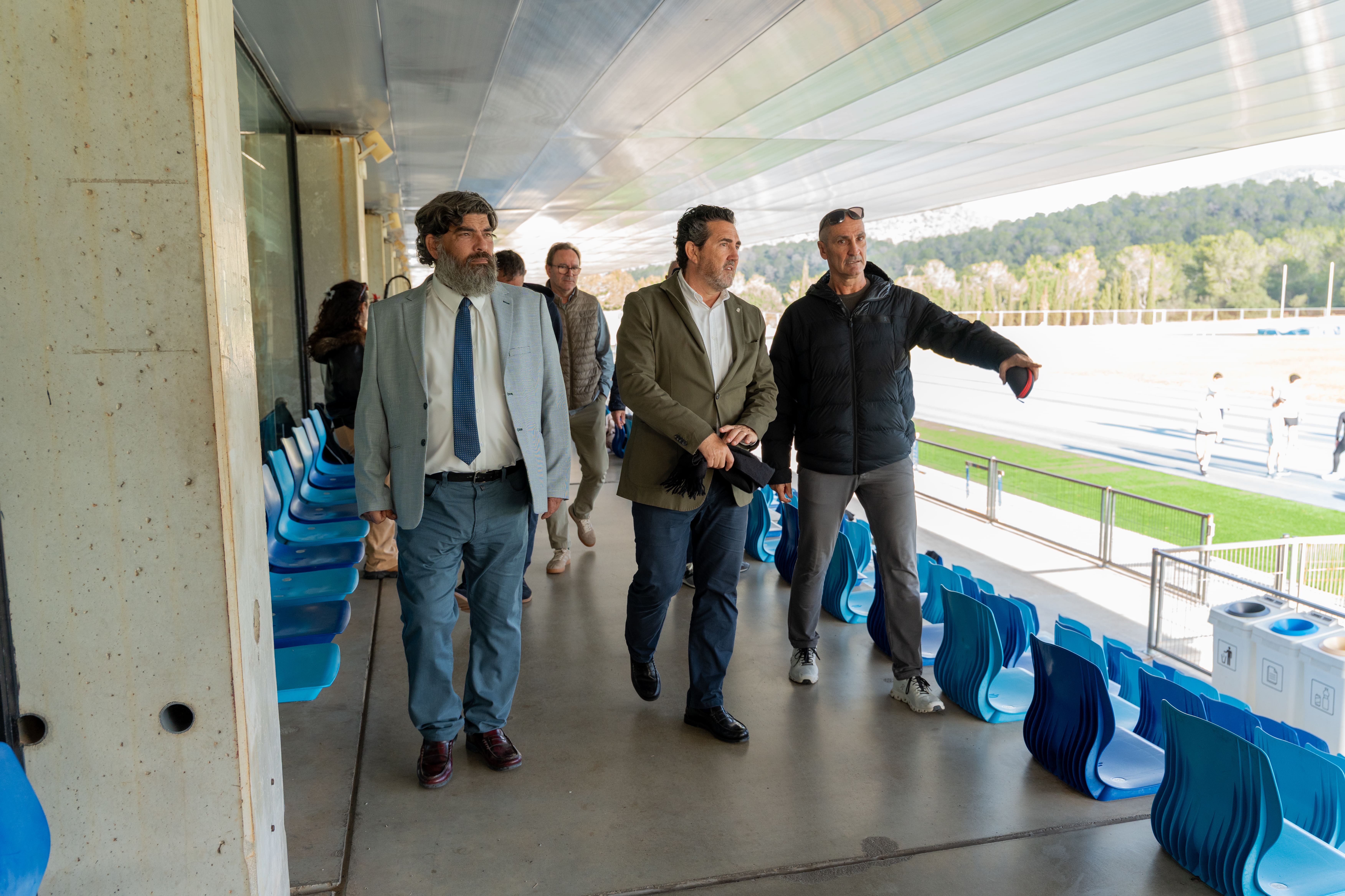 El  vicepresident segon i conseller de Medi Ambient, Medi Rural i Esports del Consell de Mallorca, Pedro Bestard, acompanyat del director insular, Toni Prats, amb el batle de l’Ajuntament de Calvià, Juan Antonio Amengual, i el regidor i el tècnic de l’Institut Calvianer de l’Esport, Joan Amengual i Jaume Thomàs , han visitat les reformes que s’han fet a la pista d’atletisme.