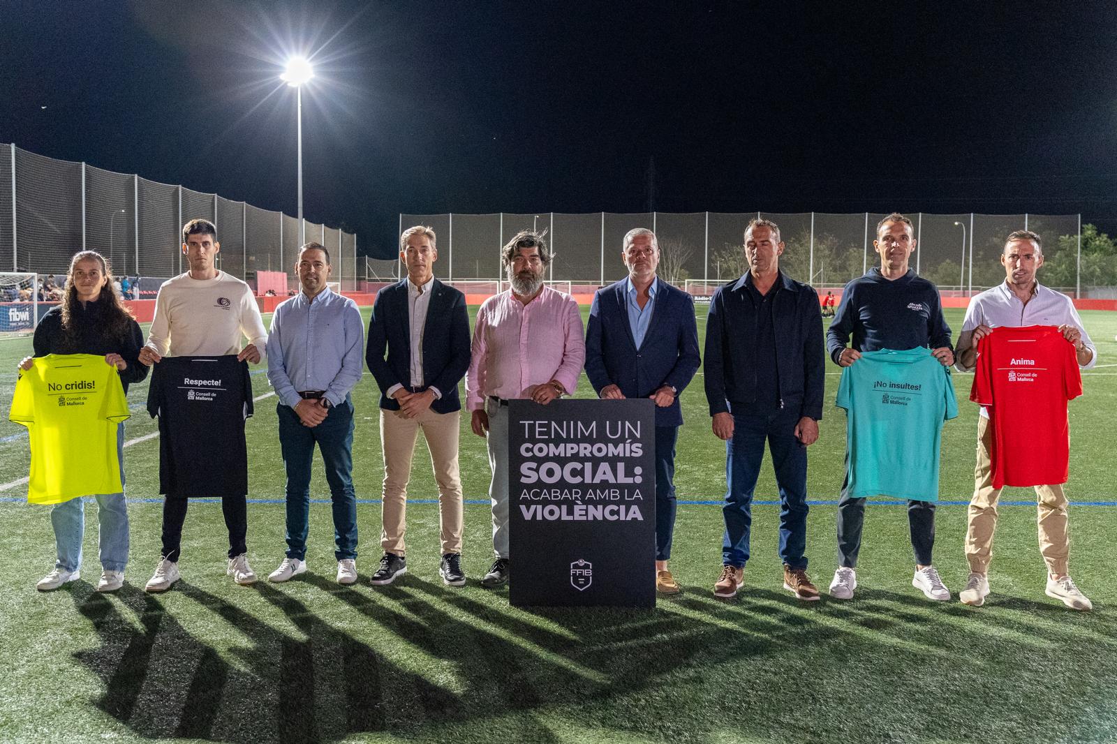Prevenir i combatre els crits, els insults, les interpel·lacions als àrbitres o actituds agressives a camps i grades. Aquest és l’objectiu de la campanya que el Consell de Mallorca i la Federació de Futbol de les Illes Balears (FFIB) impulsen al circuit de futbol base. Sota el lema «Tenim un compromís social: acabar amb la violència», s’ha presentat avui a la Ciutat Esportiva Antonio Asensio del RCD Mallorca, un nou bloc de missatges en contra de la violència a l’esport base, de la mà dels àrbitres de primera mallorquins.