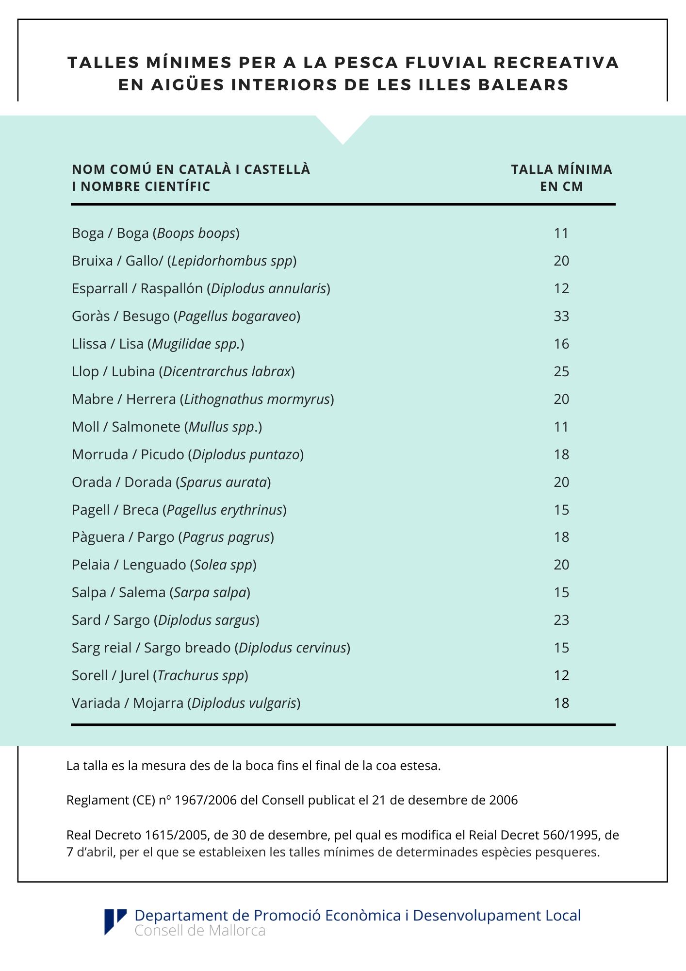 - S'han de respectar les talles mínimes definides al reglament i les podreu trobar als Documents relacionats d'aquesta pàgina.